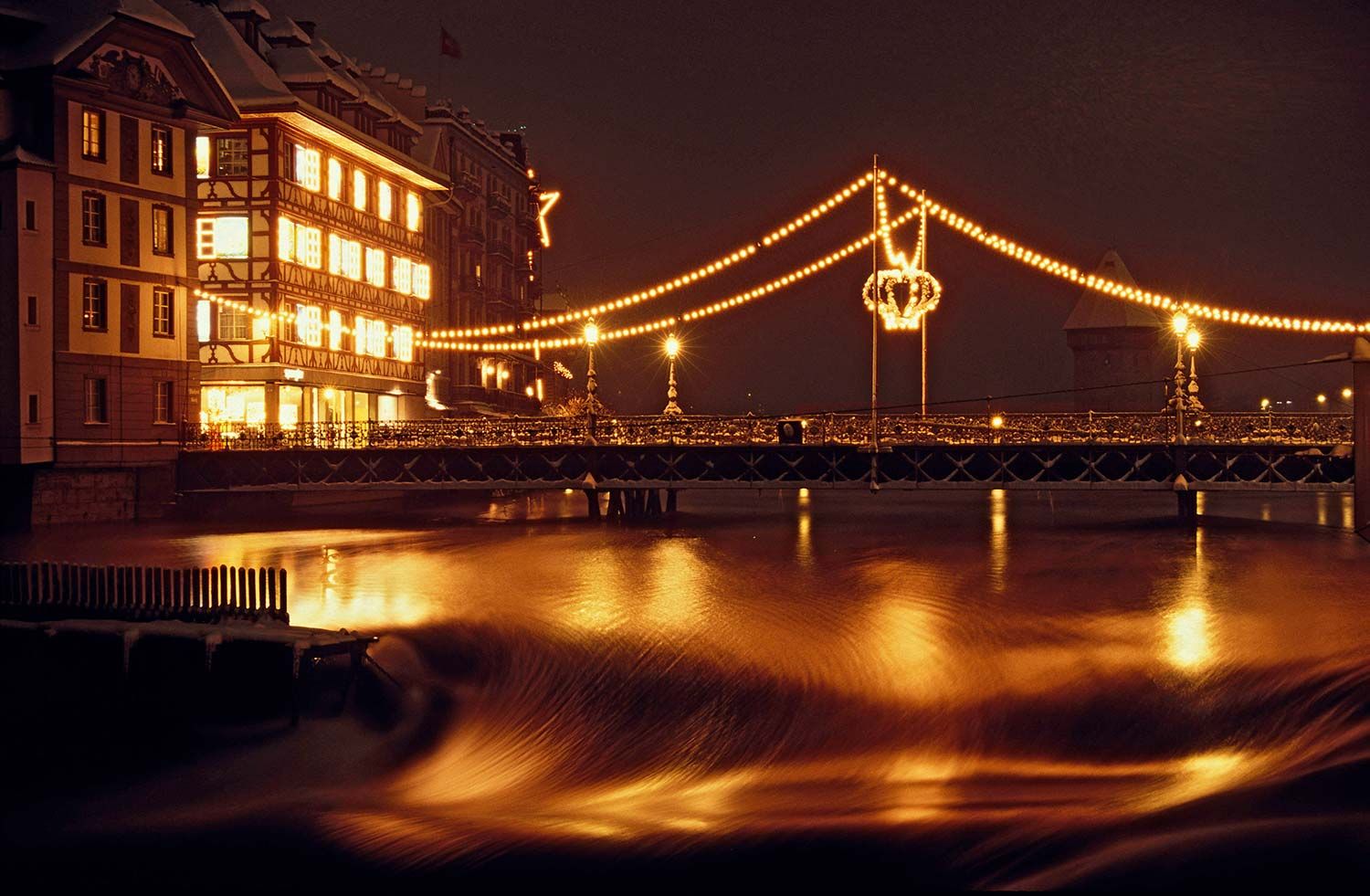 Im Jahre 1949 erhielt Luzern erstmalig eine Weihnachtsbeleuchtung. Seither schmücken die einzigartigen Sujets während der dunklen Jahreszeit die Gassen, Plätze und Brücken.